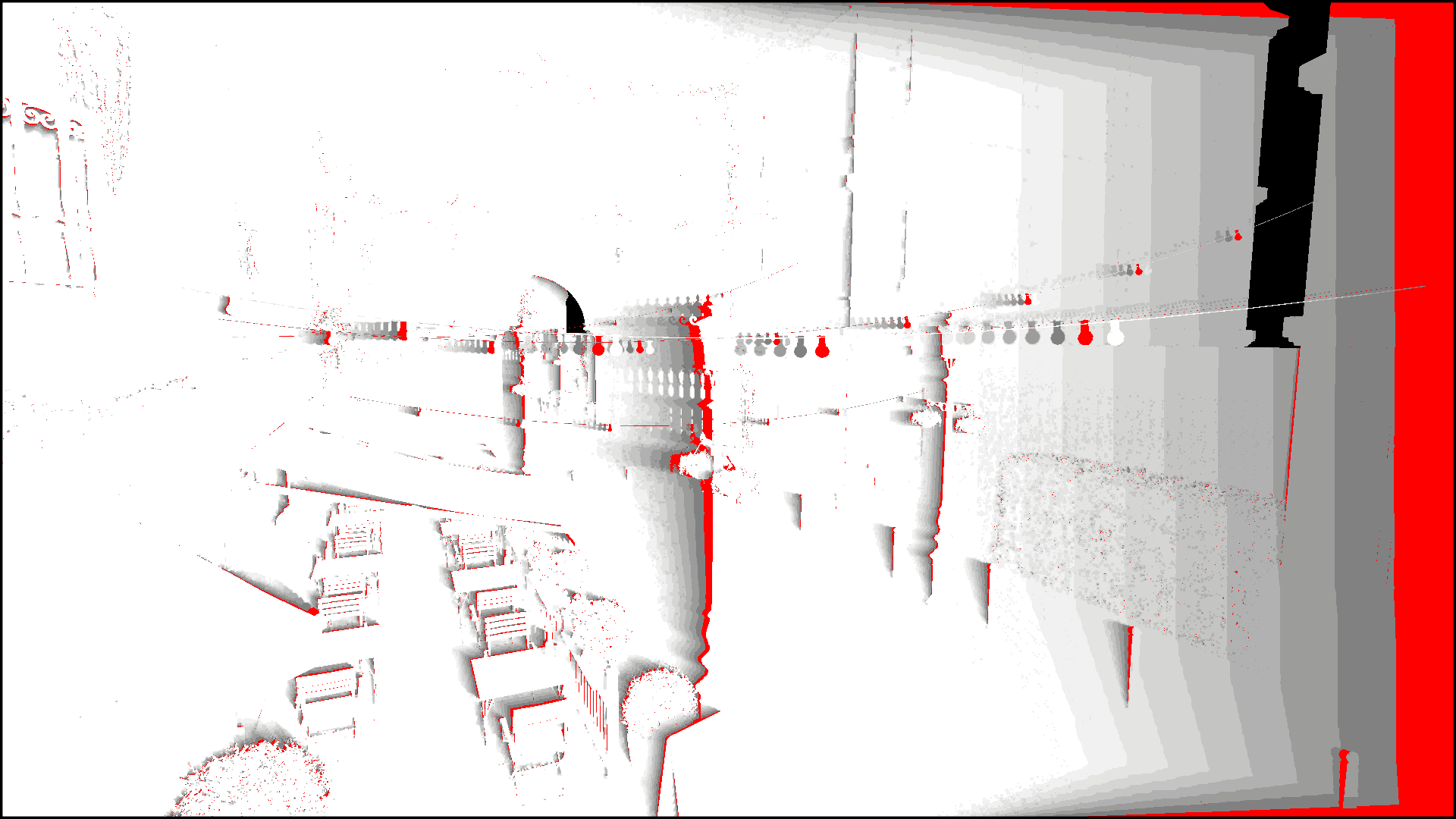 Use the Temporal Disocclusion debug mode to inspect reprojection. In this mode, freshly disoccluded areas, where no temporal history is available, are marked in red. Accumulation progress is shown in grey, and fully accumulated pixels are displayed in white.